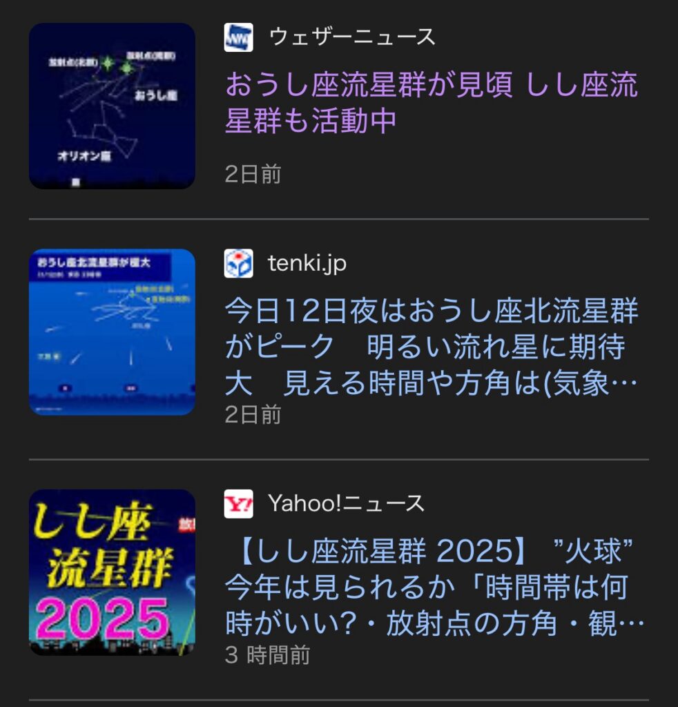 すると2日前の2025/11/12がおうし座流星群の時期だと分かった。